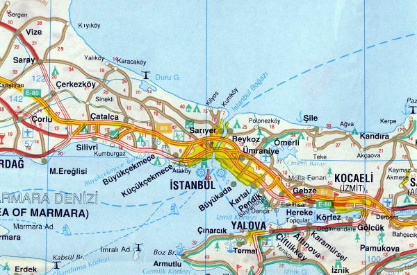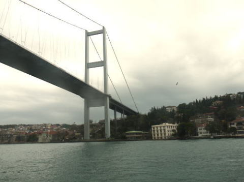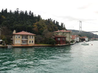 トルコ旅行 「イスタンブール篇」 ーその4− さて、翌朝はガイドさんが 7人乗りのバン(ドライバー付き貸切)でホテルまで迎えに来てくれて アジアとヨーロッパの間の海峡を通る 「ボスポラスクルーズ」です。 この日は一日ガイドをしてくれる事になってるの。 で、そのクルーズの前に 前日例の悪徳タクシー運転手に下ろされた「スパイスバザール」の入り口近くに有る 「リュステム・パシャ・ジャーミー」 に案内してくれたの。 宰相リュステム・パシャの為にミマール・スィナンが1561年に設計したもので 全面にタイルを張り巡らせてあり、特に赤色は現代の技術でも作り出せない逸品と言われている。 特に赤のチューリップをモチーフにしたタイルが傑作 と言われているらしいのだけど 写真を撮ってなかったわ。 (*^^)v この後、ガイドさんと一緒に「スパイスバザール」で ちょっとお買物をしたんだけど 何と! ガイドさんと一緒だと 誰も何も言わなくても、ほぼ全部貼って有る値段の半分なんだよ。 \(◎o◎)/! やっぱり昨日お買物をしなくて良かった。 と言っても、特に買いたいと思う物は見つからず 結局買ったのは 子供の髪留め屋さんでシャンブランの為に 可愛いゴムのセットを数個だけだったんだけどね。 (殆どどれも100円位) (≧m≦)ぷっ! そして、「ボスポラスクルーズ」です。 さて、イスタンブールが何故に 「ヨーロッパとアジアの架け橋」と呼ばれているかというとね。 ↑地図真ん中の大陸が離れているところ・・・ボスポラス海峡を挟んで ヨーロッパ側(左)とアジア側(右)に別れていて その両側に跨ってイスタンブールが有るから・・・。 という訳なのよ〜。 でもって、特にヨーロッパ側が高級とか アジア側が・・・という事は無いらしいよ。 そして、↓これが正に「アジアとヨーロッパの架け橋」 ボスポラス大橋です。 2時間弱でアジアサイドに到着・・・ すぐにランチです。 ↓レストランの中と2階の席からの眺め この後は、デザートとコーヒーでした。 それにしても、ここは結構大きな2階建てのレストランだったんだけど お客は私とシャンパパ ガイドさんとドライバーのたった4人のみ! この時期は観光客が本当に少ないのかもね。 で、肝心のお味は・・・まぁまぁってとこでした。 この日は小雨が降ったり止んだりだったけど、 全て車とフェリーでの移動だったから問題なしね。 ただ、写真がどうしても綺麗に撮れなかったのが残念! この後は「ベイレルベイ宮殿」という ボスポラス大橋のたもとに有る夏の離宮に行ったんだけど ↑入り口にぶら下がっていた このゴージャスなシャンデリアの写真を撮っていたら 「写真はダメダメ!」 と警備係(?)の人が飛んできたわさ。 そんな事、どっかに書いて有ったかな〜。 (>_<) んでもって、この警備員、この後ずっと私の後に付いて来るんだよ〜。 よっぽど怪しかったのかな、この私・・・。 (≧m≦)ぷっ! という訳で、 素晴しくゴージャスだったこの宮殿の写真は無しね。 この後は車で高台からのパノラマビューを見て来たの。 帰りは車で、今朝船に乗った対岸辺りまで戻り カーフェリーでヨーロッパサイドに戻ったの。 という訳で、明日はいよいよ「カッパドキア」へと向かいます。 お楽しみにね〜。 続く